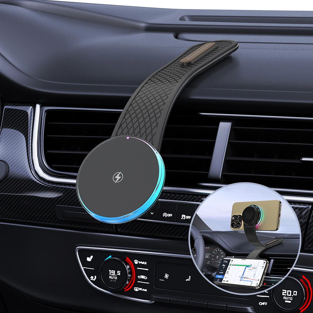 15W Car Mount Charger Compatible iPhone MagSafe 16 Pro Max 15 14 13 12 Magnetic Wireless Car Charger Free Adjustment Angle