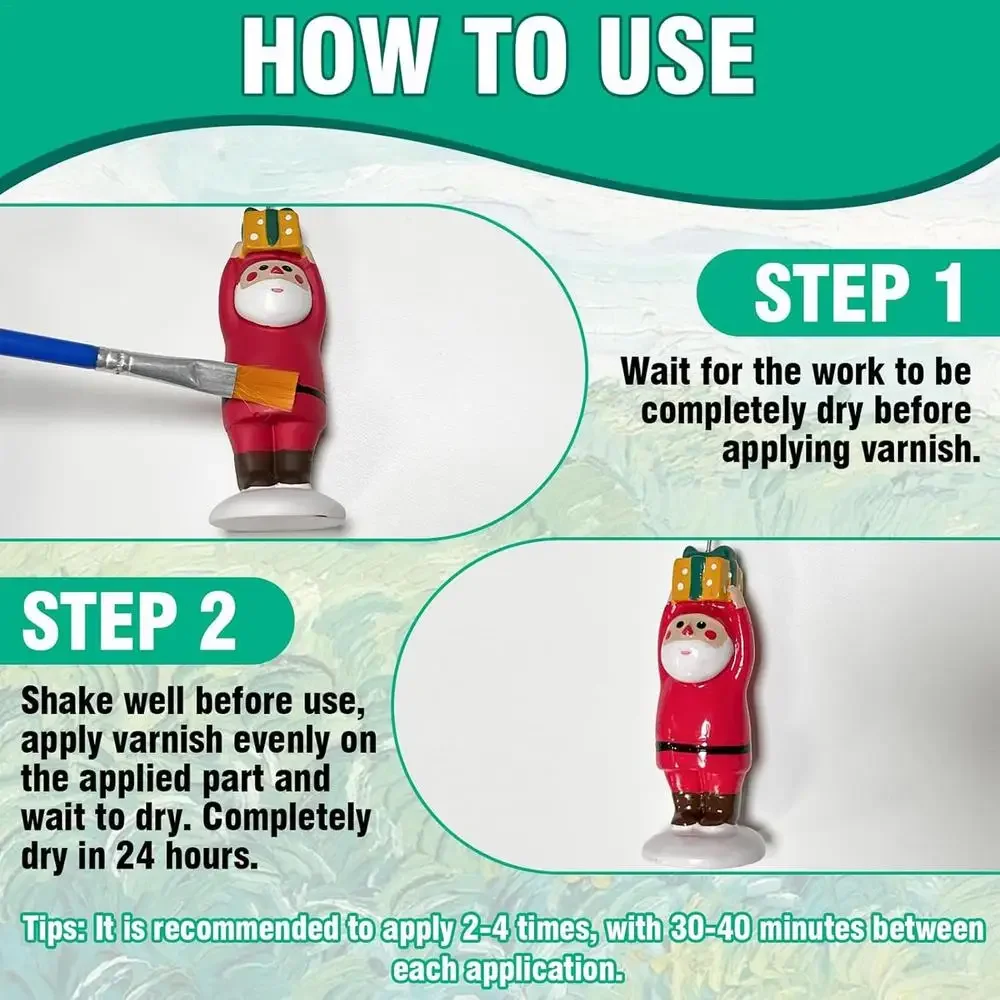 4.Safe to Use: Our clay varnish is crafted to meet safety standards for safe creativity. Perfect for artists of all ages, this varnish provides a glossy finish without compromise.