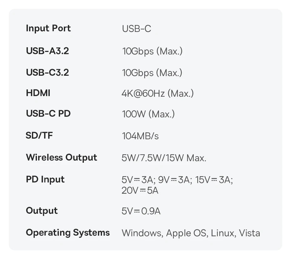 ✔USB-C PD: 100W (Max.)