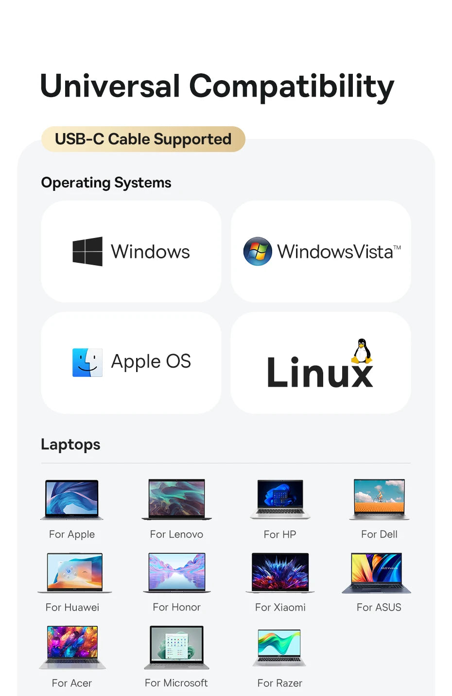 ✔ Laptops: For Apple, for Lenovo, for Xiaomi, etc
