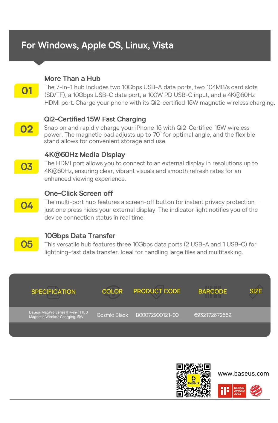 1. Name: Baseus MagPro Series || 7-in-1 HUB Magnetic Wireless Charging 15W