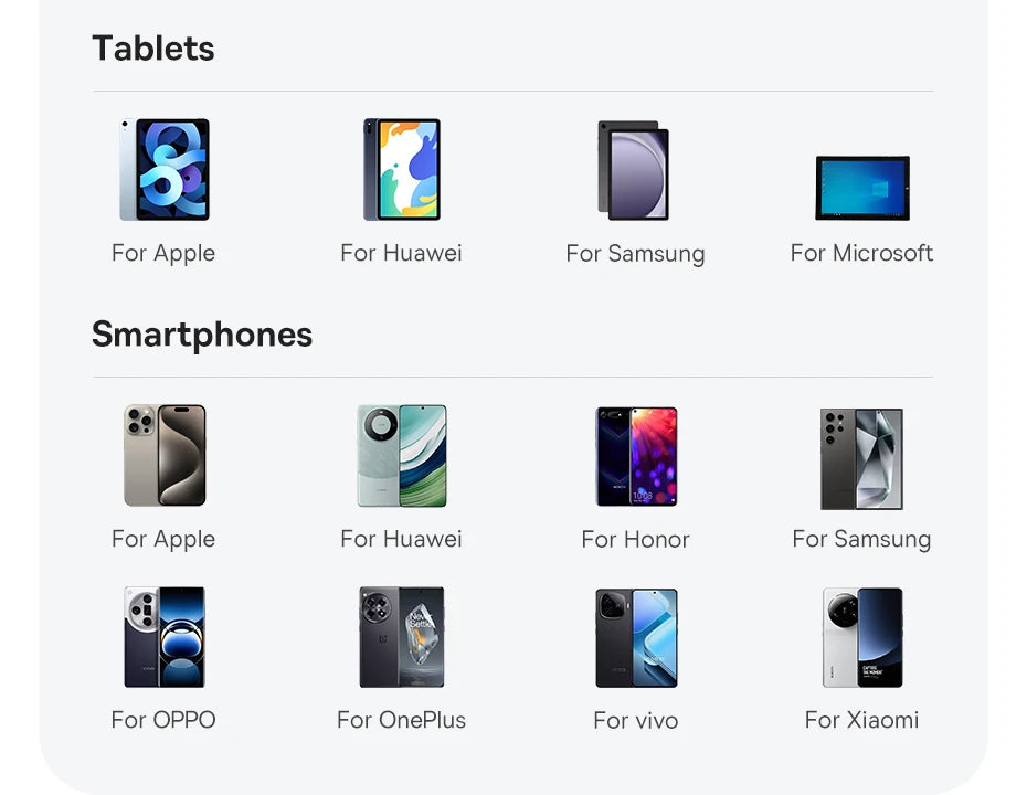 ✔ Tablets: For iPad, for Huawei Pad, for Samsung Pad, etc