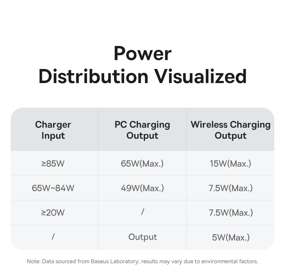 Data from Baseus Lab based on charging tests compared to a 7.5W wireless charger.