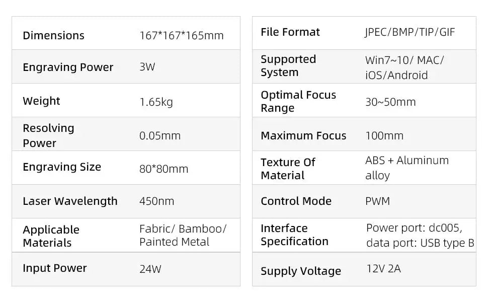 Engraving Area: 80x80mm
