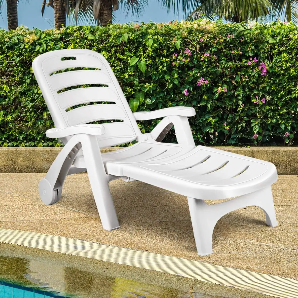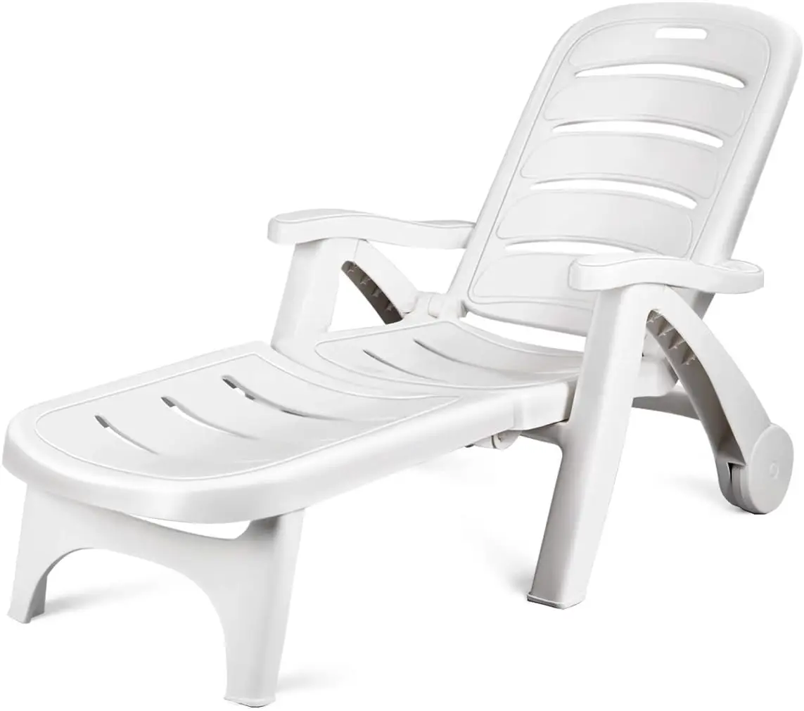 Folding Camping Lounge Chair, Portable Rolling Recliner, 5 Adjustable Positions, White