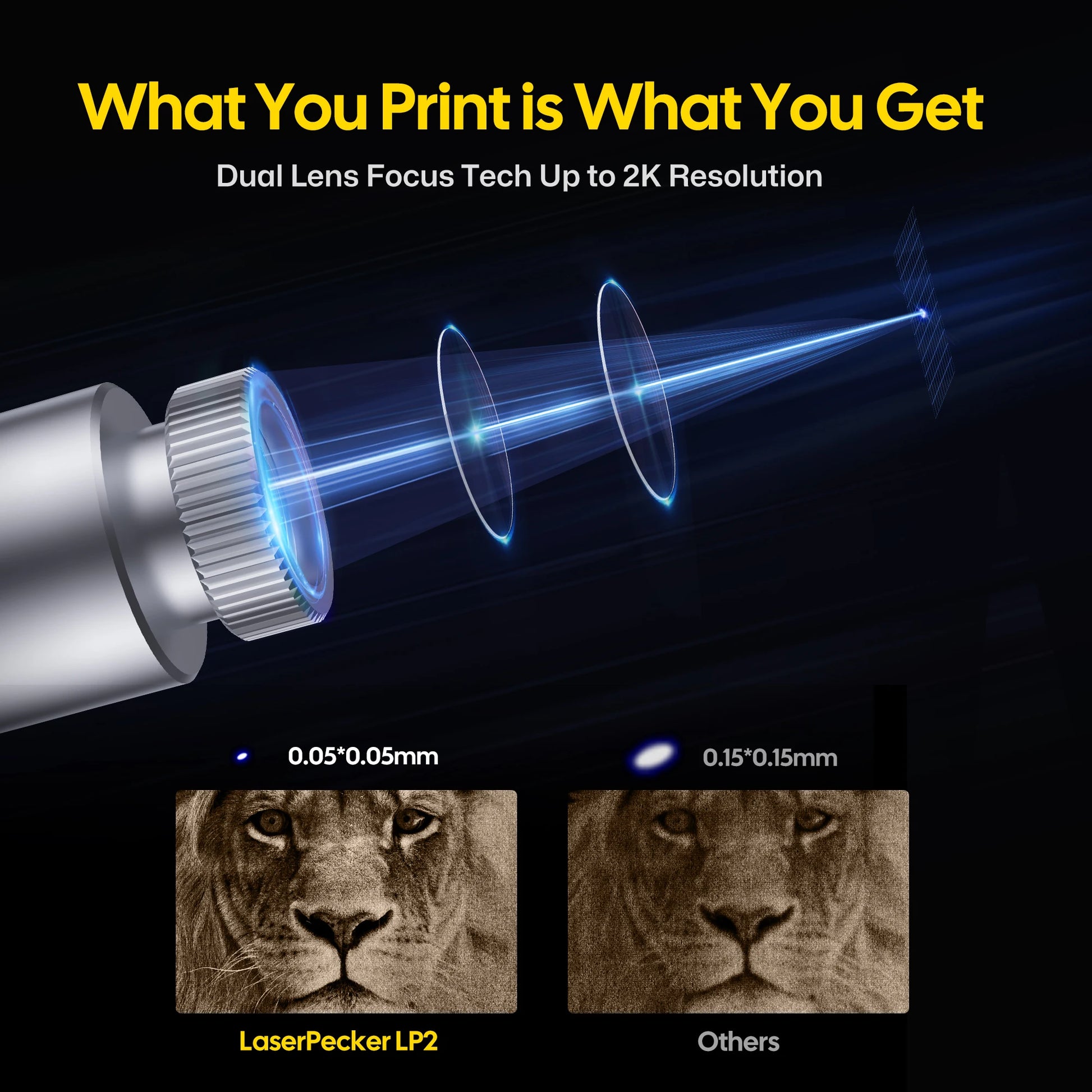 Laserpecker Laser Engraving Machine With 5W 2K Bluetooth 5.0 Mini Portable Engraver For Woodworking DIY Paper Leather LP2