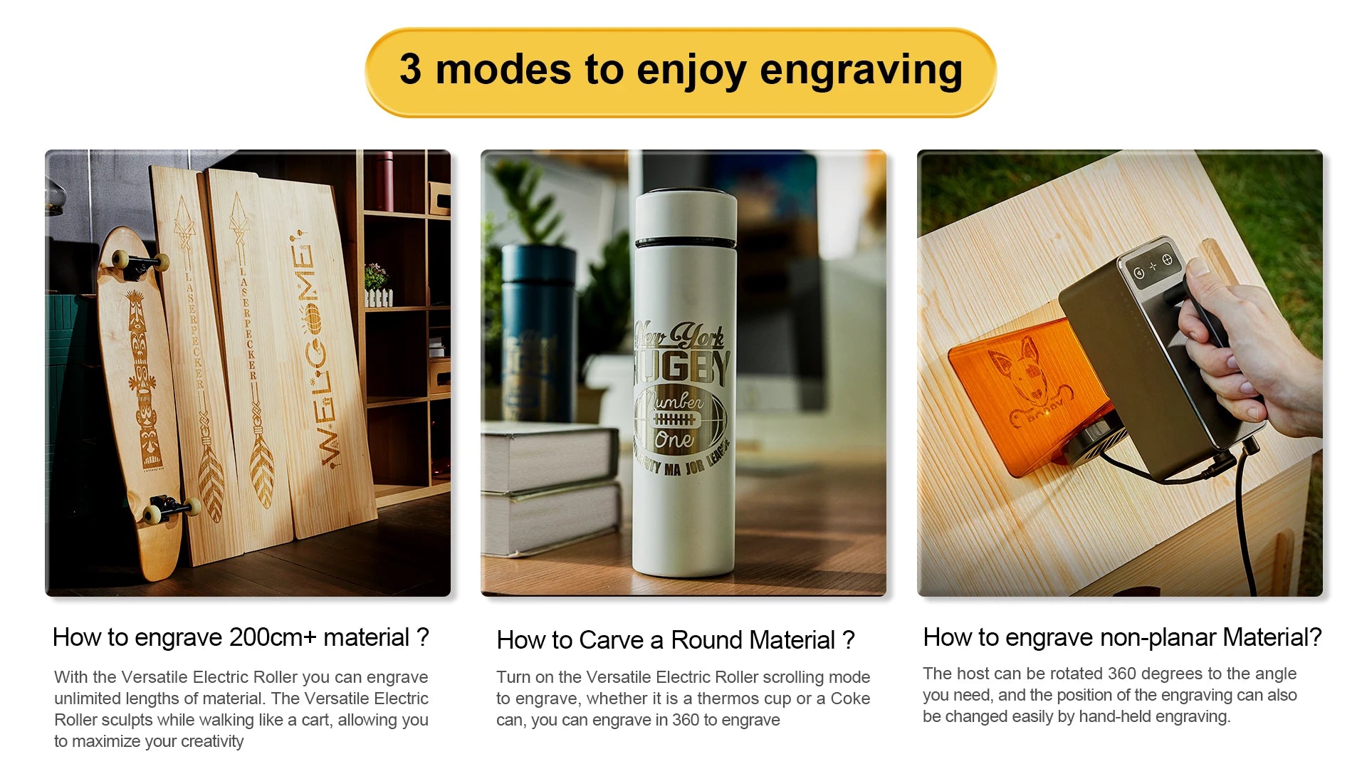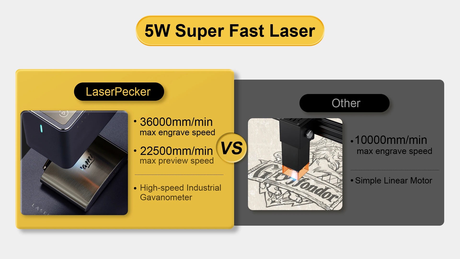 LaserPecker 2 rockets up the engraving speed to 600mm/s. Compared to the LaserPecker Pro first generation, it’s a giant leap forward. Three engraving resolution options of 1k, 1.3k and 2k provide the perfect details level at your fingertips. 10 times higher speed!