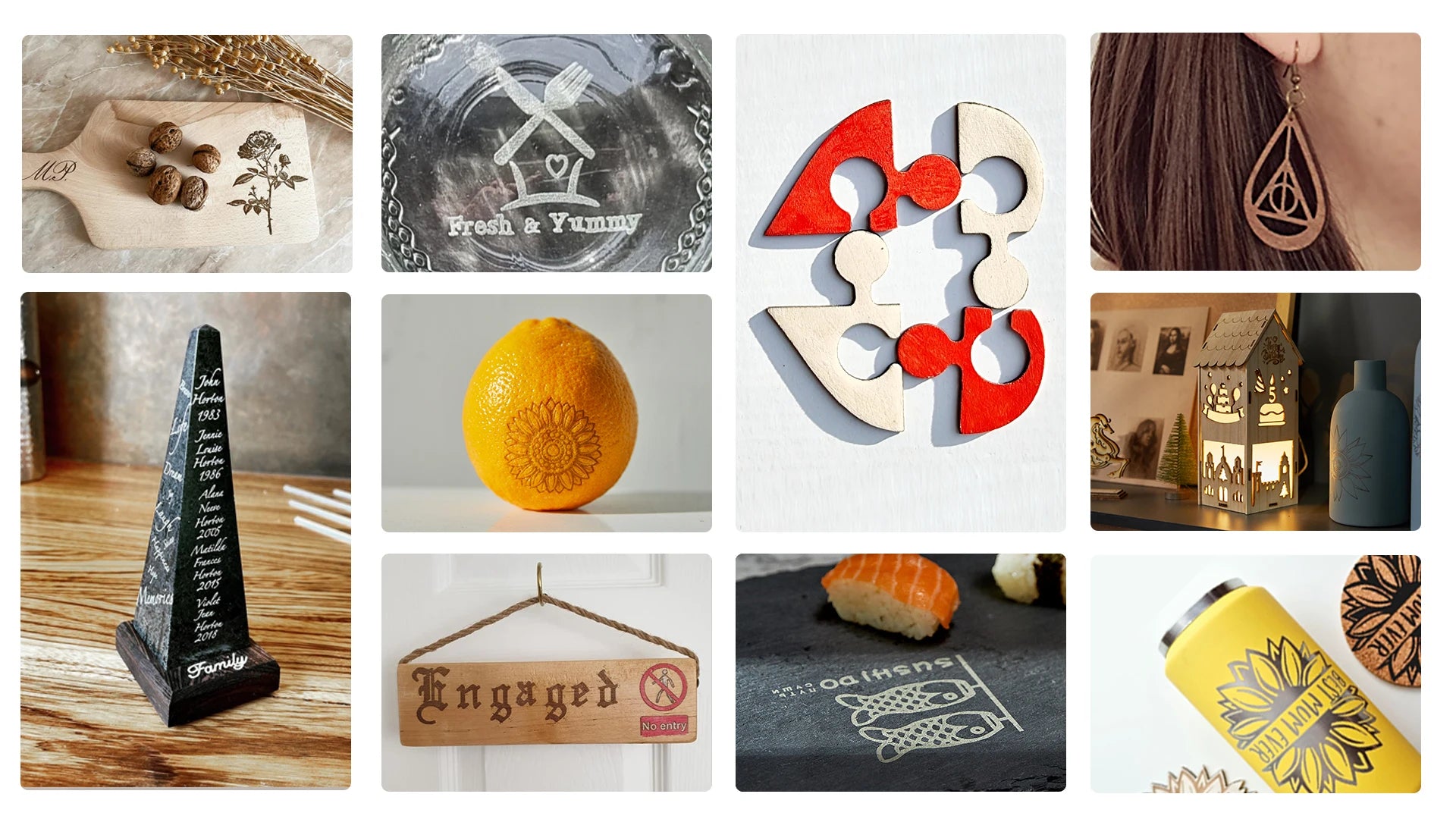 Materials For Engraving: Wood/bamboo/Paper/leather/drapery/plastic/acrylic/fruit/cake etc