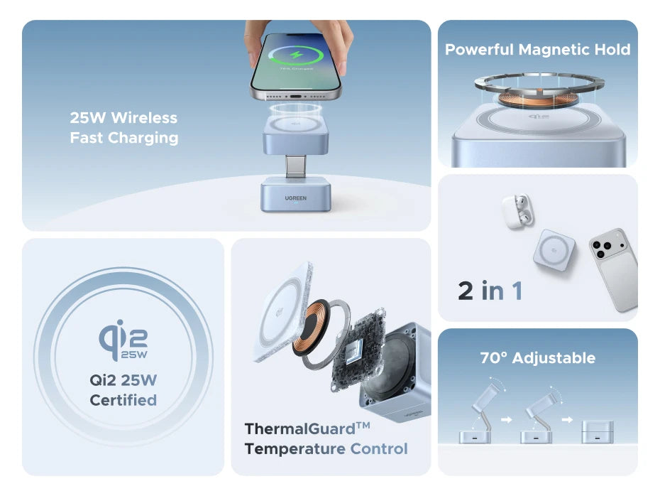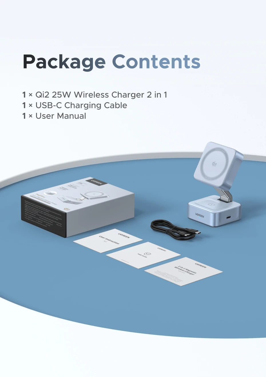 UGREEN Upgraded Qi2 25W Magnetic 2-in-1 Wireless Charger Stand Fast Charging Stand Magsafe Charger For iPhone 16 17/AirPods